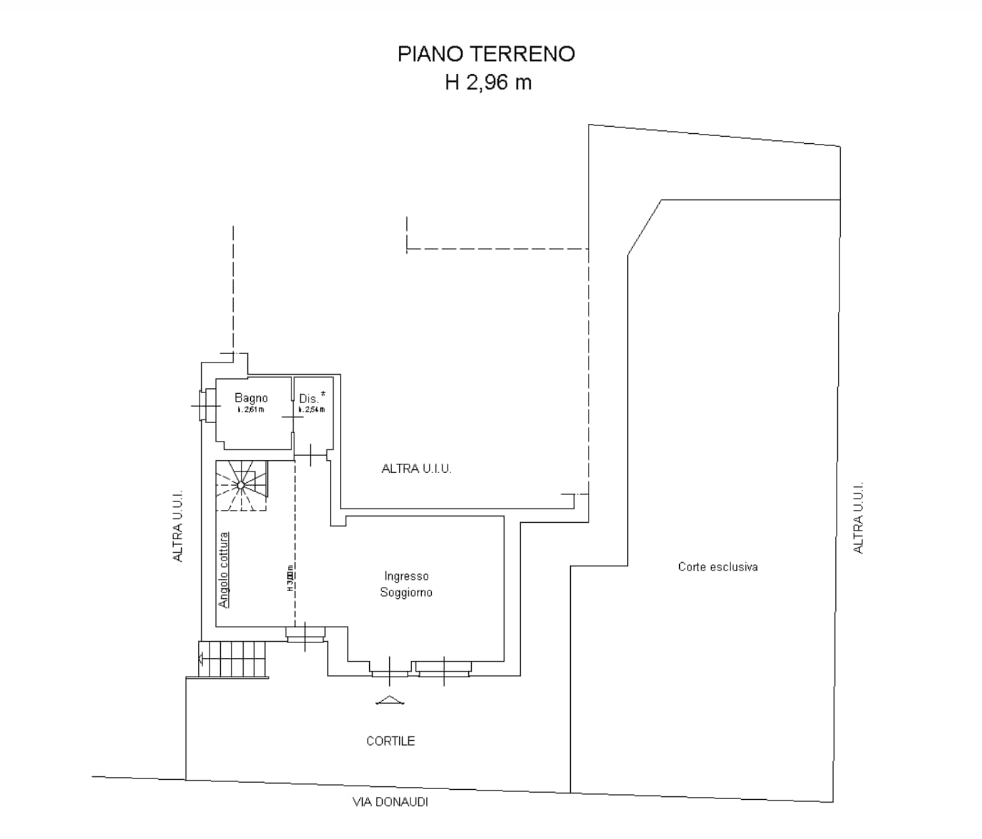 Al piano terra troviamo l’ingresso su soggiorno con cucina a vista. Completano il piano un disimpegno, un antibagno e un bagno. Il piano primo è collegato da scala a chiocciola interna. Al piano superiore è presente una spaziosa camera matrimoniale con ampie possibilità di armadiatura. L’attuale distribuzione consente di ricavare una seconda camera, trasformando l’immobile in trilocale.